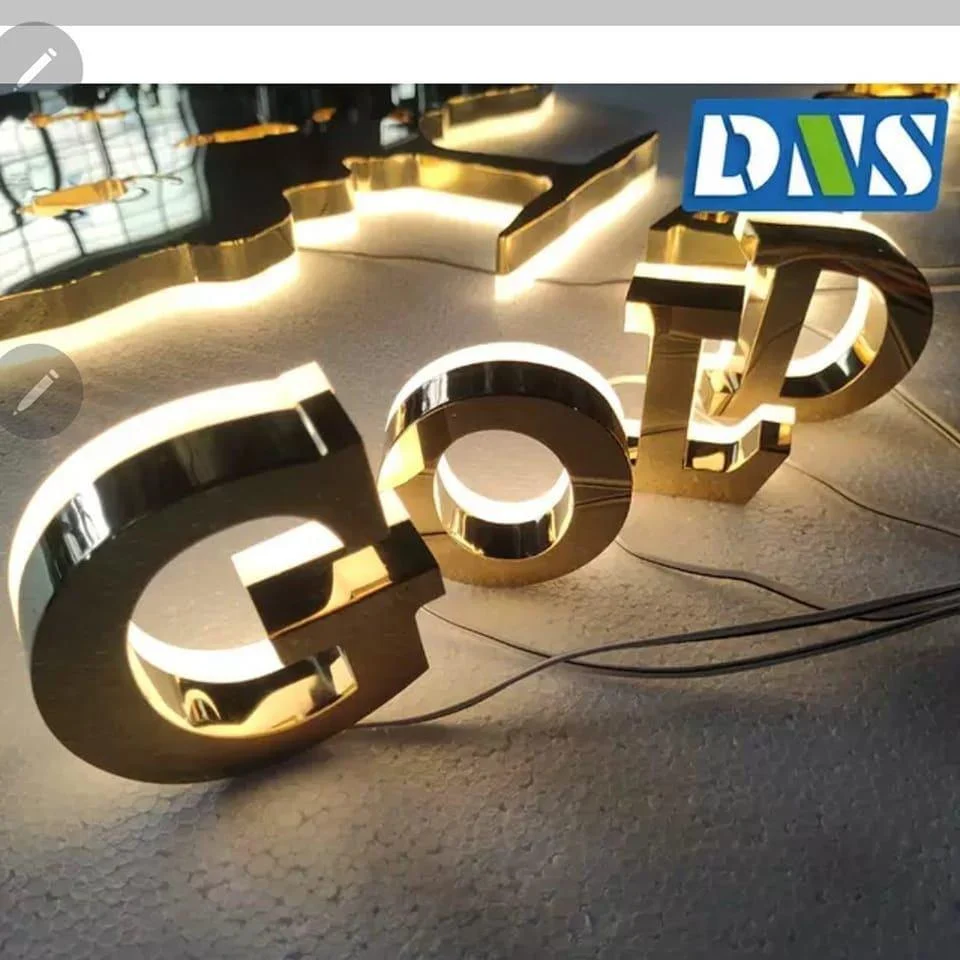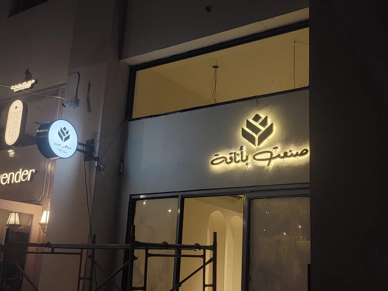 • Plastic mounting panels with stainless steel: In this type, plastic letters are placed and wrapped with stainless steel strips. This is the greatest evidence of the skill of the technicians who make the raised panels in the panel code, as they can easily combine many materials, shape them, and produce an artistic panel that has never been seen before, in addition to their ability to adapt different materials and raw materials.